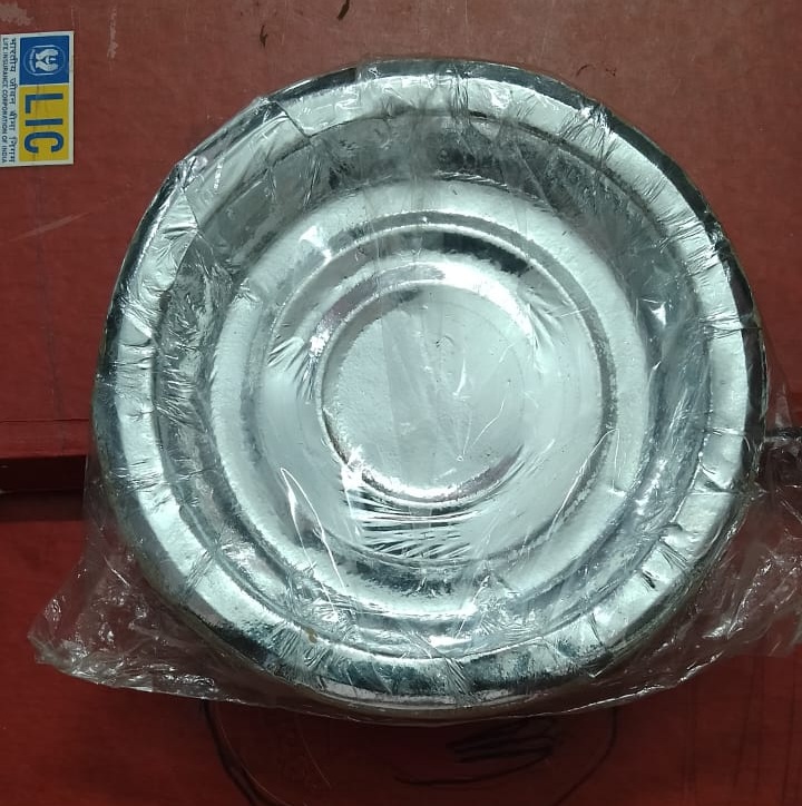 The Silver Chowmein Plate / Chaat Plate is ideal for serving chowmein, chaat, snacks, street food, and fast food items. Made from food-grade silver laminated material, these plates are lightweight, hygienic, and disposable, making them perfect for street vendors, food stalls, parties, and events. A cost-effective bulk pack for daily serving needs.